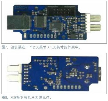 本设计装在一个2.36英寸×1.38英寸的外壳中(图7),PCB下方有几只无源元件(图8)。提供了详情,能下载到整个设计,以及CAD/CAM文件、物料清单和软件。