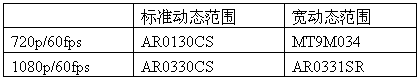 表1 Aptina的高清监控传感器组合