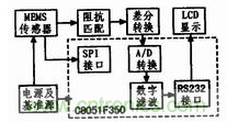 设计中采用C8051F350的24位Sigma-Delta模/数转换器作系统信号的模数转换,SPI接口作MEMS倾角传感器的温度采集,以实现对传感器的温度补偿,UART作串行LED显示接口。为保证模/数转换器工作稳定,采用外部基准源。