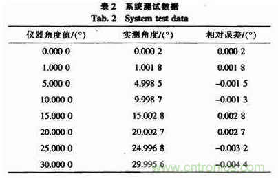从表2的测试数据可知,每个测试点的偏差有正有负,其主要原因在于这些测试点的曲线拟合是独立的,互不影响。另外,在30°时绝对误差最大,最大的绝对误差为0.0044°,在1°时相对误差最大,为0.001 8/1≈0.018%。
