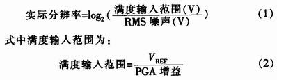 SCA100T传感器的 灵敏度为70mV/(°),分辨率为0.0025°,ADC参考电压VREF为2.5V,则需要能检测的最小信号为0.0025°x70mV/°= 0.175 mV,根据0.175 mV/2.5 V="1"/14 286可知,ADC的位数至少应为14位,即214=16 384>14 286,根据减额设计要求,取20位,所以本设计完全满足设计要求。