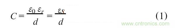 式中,S为极板相互遮盖面积,单位为m2;d为两平行板间的距离,单位为m;ε为极板间介质的介电常数;εr极板间介质的相对介电常数;ε0真空的介电常数。从上式可以看出,当d小时可使电容量增大,而使灵敏度增加,但d过小容易引起电容器击穿,一般我们可以采取在极板间放置云母来改善,此时电容C为两电容串联,可写成: