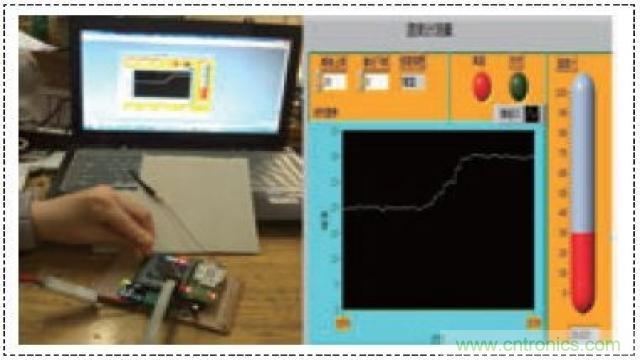 本系统对一个温度传感器传输的数据进行了测试,得到的结果和温度及所测的结果非常接近,但是其比温度计的灵敏度和分辨率要高很多。另外系统工作也非常稳定,环境的影响也很小。图3是测试的结果,其中20℃的时候为室温,温度升高是由于用手触摸传感器所致。