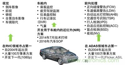 图1:汽车图像传感器应用和安森美半导体市场地位