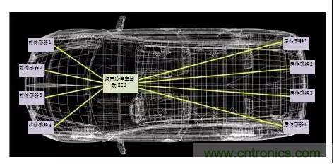 超声波停车辅助也被称为停车辅助系统、停车引导系统和倒车辅助。这些系统可实现从简单地检测周围物体并通过声音警示驾驶员,到几乎没有人为操作的自动停车。通常,这些系统拥有4-16个感应器,巧妙地围绕车身安装,以提供所需的检测覆盖,如图2所示。