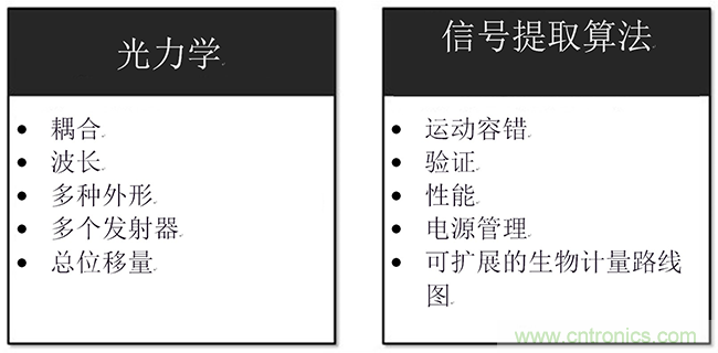 ·光力学耦合 - 在传感器与人体之间是否能够高效进行双向光导与耦合?使血流信号最大化和向传感器施加噪音的环境噪音(如日光)最小化,是其中的关键。
