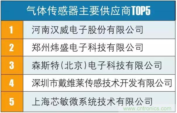 国内方面,主要的气体传感器企业有炜盛科技、河南汉威、森斯特、深圳戴维莱和上海芯敏等。其中,炜盛科技是目前国内唯一能生产半导体类、催化燃烧类、电化学类和红外光学类等四大类气体传感器的企业。为国内气体传感器绝对龙头,占据60-70%销售量。检测气体种类覆盖绝大多数可燃气体和多数毒性气体,广泛应用于工业、矿业、等领域。(记者:谭伦)