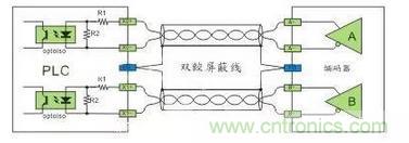 主要用于硬件高速计数器(HHSC)的输入使用,接口电压为5VDC,在应用上为确保高速及高噪音抗性通常采用双线驱动方式(Line-Drive)。如果工作频率不高与噪音低也可以采用5VDC的单端SINK或者SRCE接法,串联一个限流电阻转换成24VDC的单端SINK或者SRCE接法。