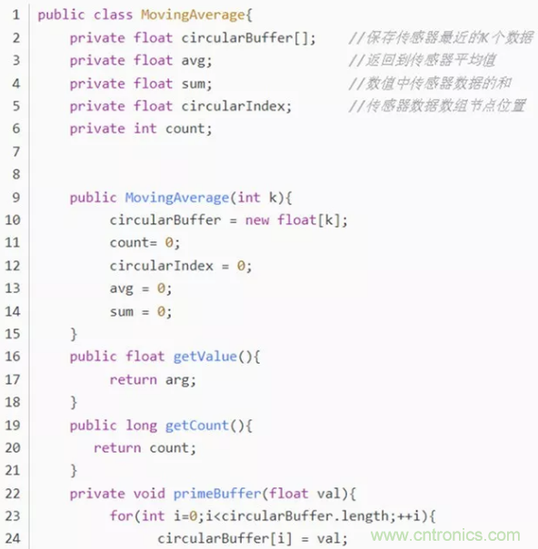 保留传感器数据流中最近的K个数据,返回它们的平均值。其中,K表示平均“窗口”的大??;