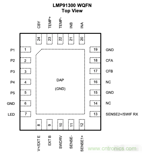 LMP91300采用4mm x 5mm 24端子WQFN和2.05mm x 2.67mm 20端子DSBGA封装,工作温度范围为–40°C至+ 125°C。
