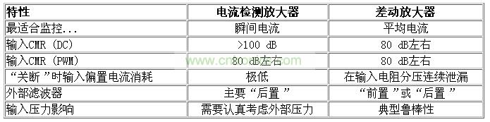 显而易见,虽然电流检测放大器和差动放大器工作方式不同,却履行同样的功能。差动放大器将高输入电压衰减,使信号达到放大器可以接受的电平。电流检测放大器将差分输入电压转换为电流,然后再转换至以地为参考的电压;其输入放大器因采用高压制作工艺,能承受高共模电压,。毫无疑问,两个架构的不同将导致其性能差异,设计工程师在选择高端电流检测解决方案时必须考虑这些性能差异。通常,厂商的数据手册已提供了大部分信息,可根据精度、速度、功耗及其他参数对器件的类型做出正确判断。然后,器件架构内在的某些重大差异是无法在数据手册中立刻发现的,但这些也是非常重要的设计考虑事宜。下面给出了一些工程师在实现最佳解决方案时必须考虑的关键点。